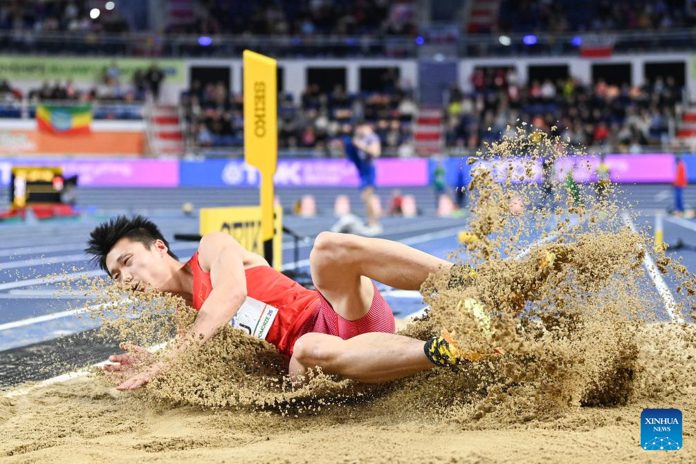 Su Wen of China competes during the men's triple jump final at the 2026 World Athletics Indoor Championships in Torun, Poland, March 20, 2026. [Xinhua/Zhang Haofu]