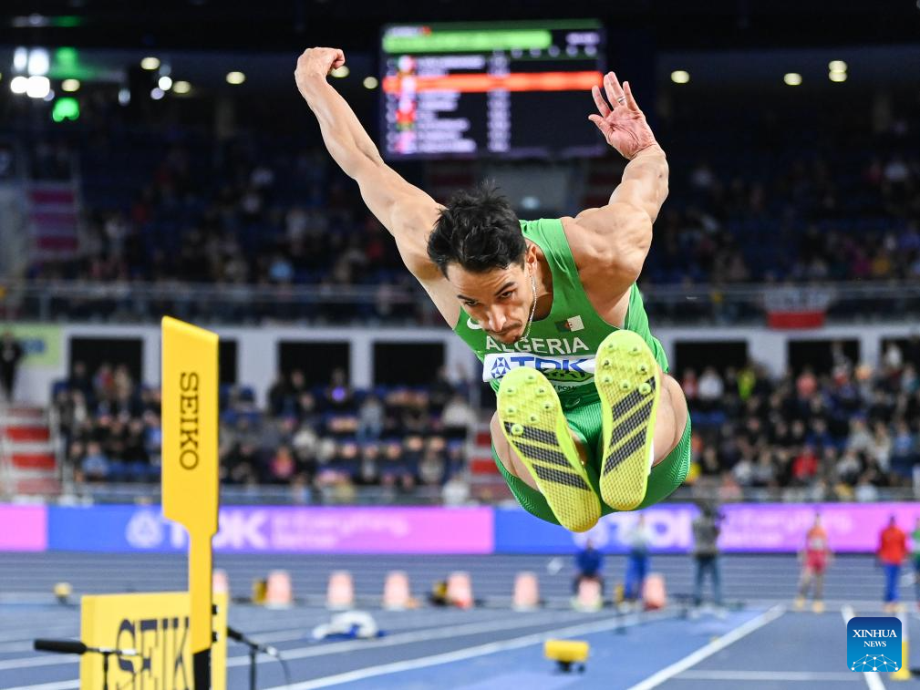 Yasser Mohammed Triki of Algeria competes during the men's triple jump final at the 2026 World Athletics Indoor Championships in Torun, Poland, March 20, 2026. [Xinhua/Zhang Haofu]