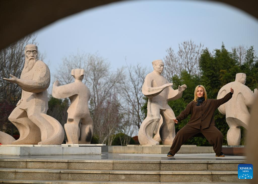 A Russian practitioner practices Taijiquan in Chenjiagou Village of Wenxian County, central China's Henan Province, March 19, 2026.(Xinhua/Li Jianan)