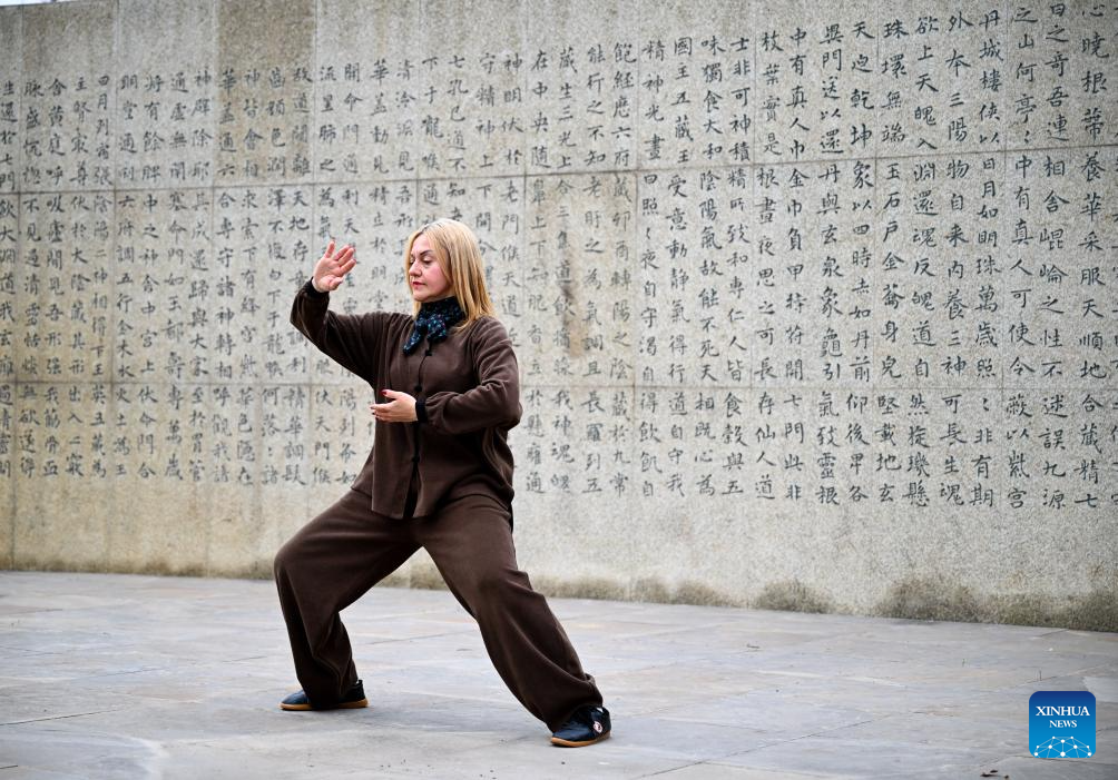 A Russian practitioner practices Taijiquan in Chenjiagou Village of Wenxian County, central China's Henan Province, March 19, 2026.(Xinhua/Li Jianan)