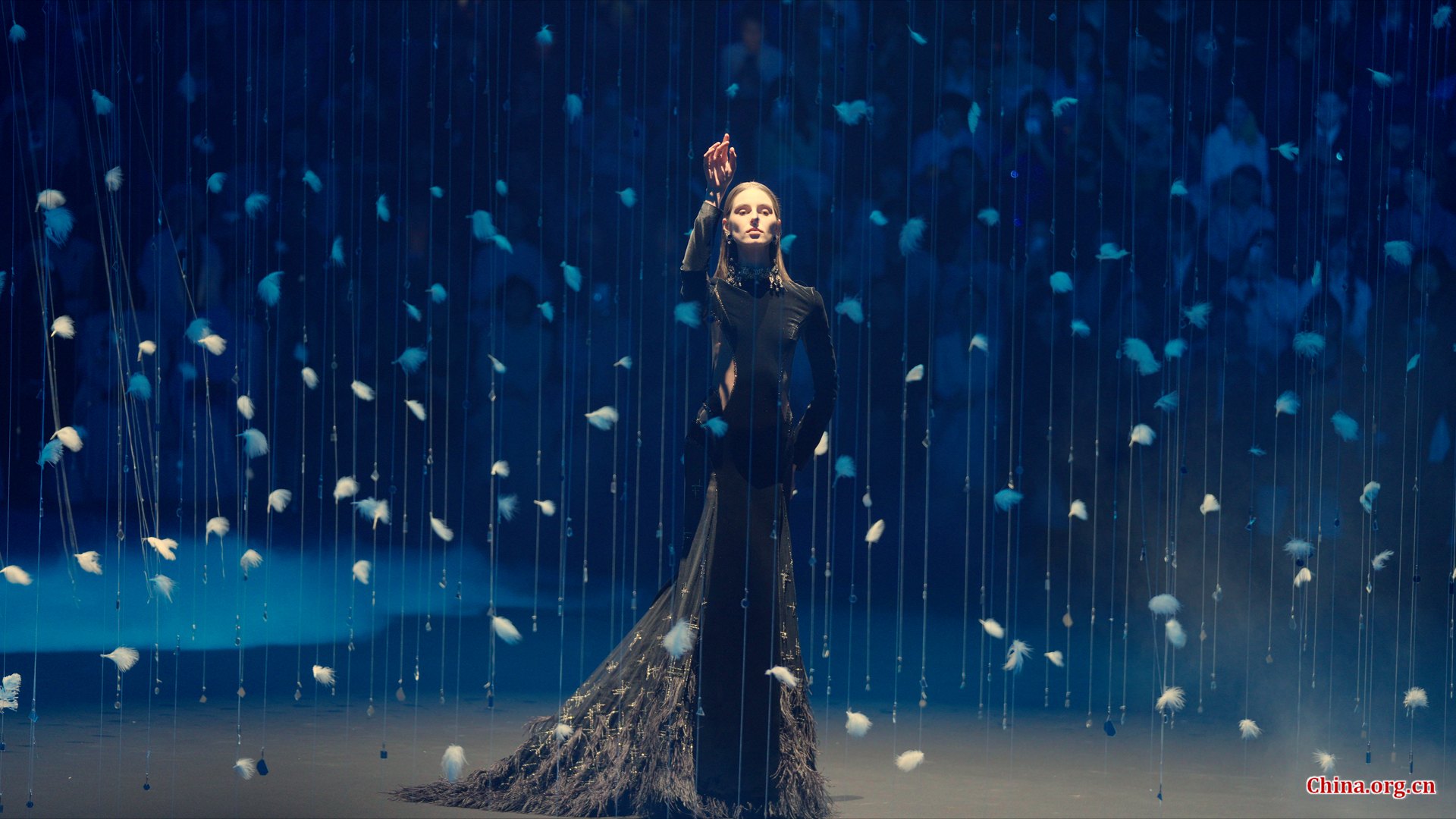 A model presents a creation by designer Xiong Ying during the opening fashion show of China Fashion Week (Spring) 2026 in Beijing, capital of China, March 20, 2026. The fashion week runs from March 20 to 28 in Beijing. [Photo by Wang Yiming/China.org.cn]