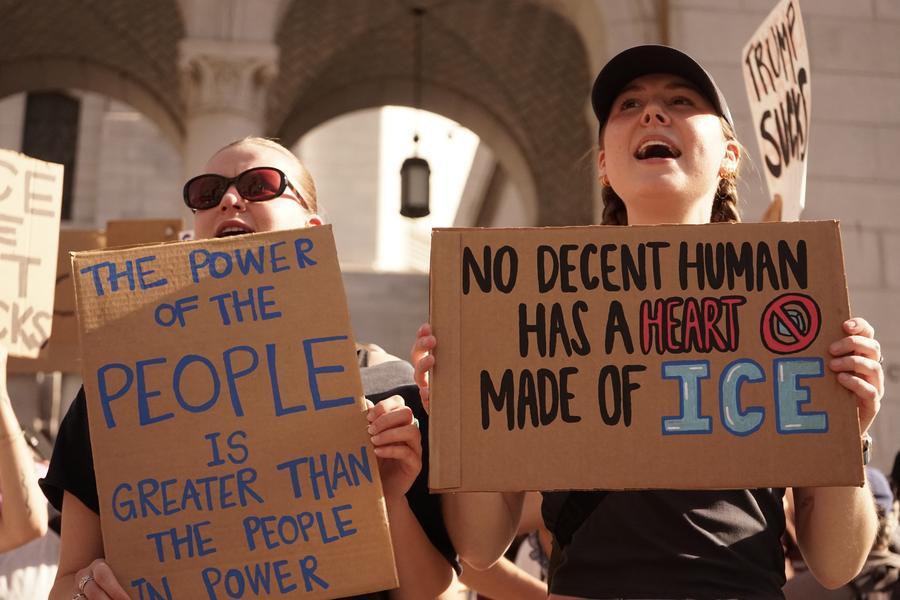 People attend a rally in front of the Los Angeles City Hall, in Los Angeles, California, the United States, Jan. 31, 2026. [Photo/Xinhua]