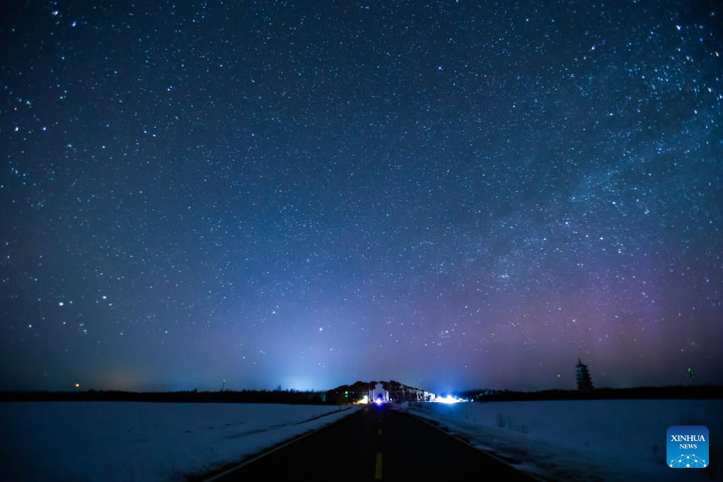 This photo taken on March 23, 2026 shows the aurora observed from Jiayin County, northeast China's Heilongjiang province. Due to the influence of geomagnetic activities, many places in Heilongjiang province witnessed splendid auroras from the night of March 22 to the early morning of March 23. (Photo by Li Shaojun/Xinhua)