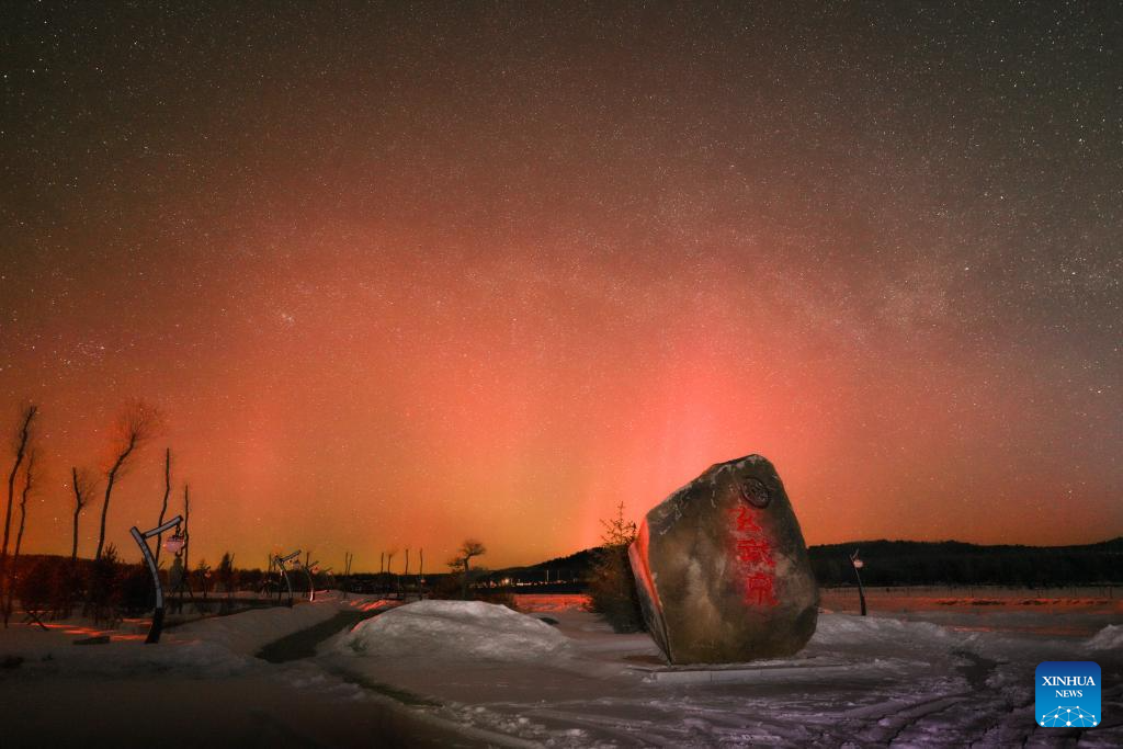 This photo taken on March 23, 2026 shows the aurora observed from Tahe County, northeast China's Heilongjiang province. Due to the influence of geomagnetic activities, many places in Heilongjiang province witnessed splendid auroras from the night of March 22 to the early morning of March 23. (Photo by Liu Junguo/Xinhua)