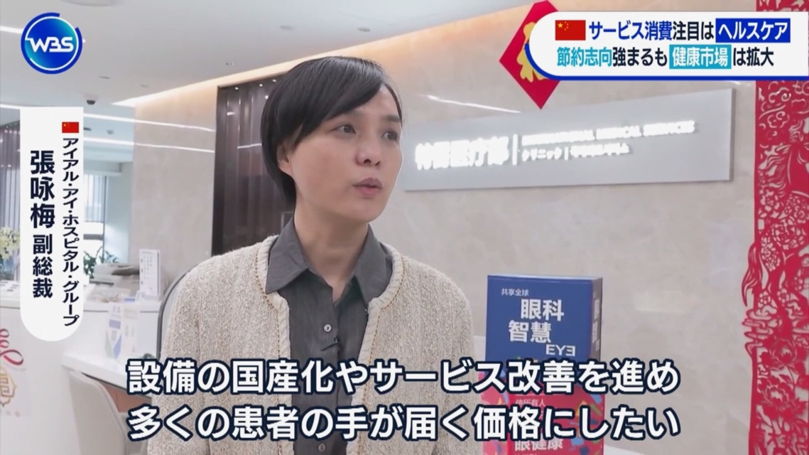 Zhang Yongmei, vice president of Aier Eye Hospital Group, told TV TOKYO that the sector has expanded steadily in recent years, with increases in both outpatient visits and surgeries.