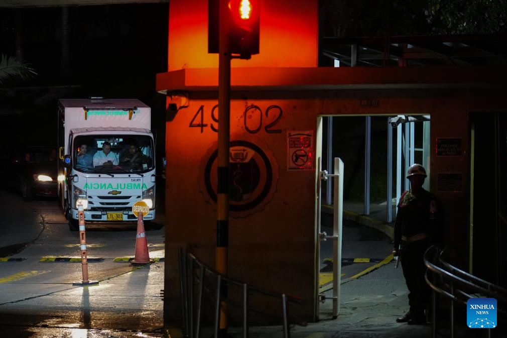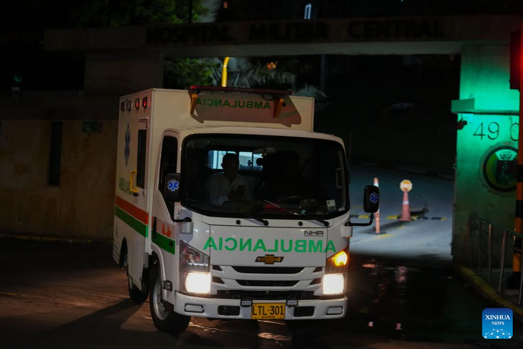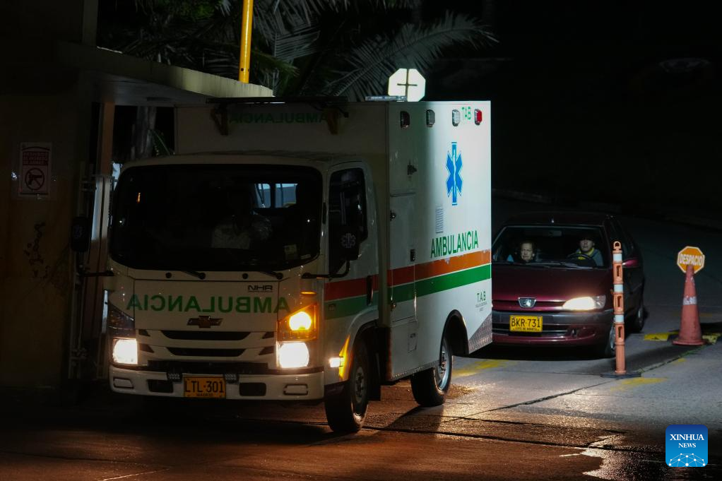 An ambulance leaves a military hospital after transporting the injured from a Colombian military aircraft crash, in Bogota, Colombia, on March 23, 2026. [Photo/Xinhua]