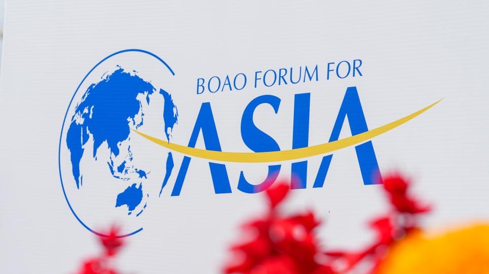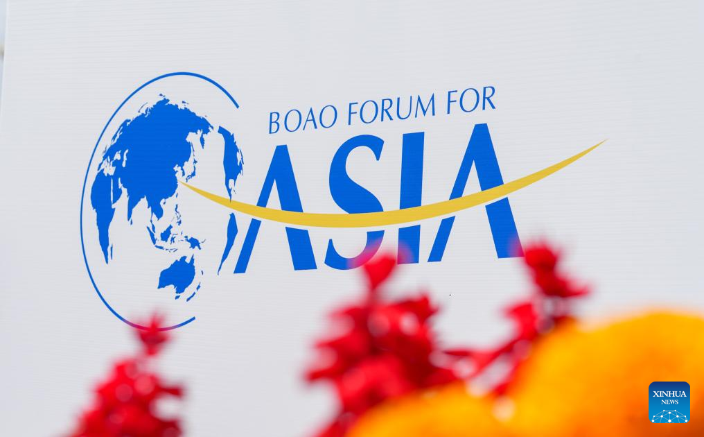 This photo taken on March 23, 2026 shows the logo of Boao Forum for Asia (BFA) at the BFA International Conference Center in Boao Town of Qionghai City, south China's Hainan Province. [Photo/Xinhua]