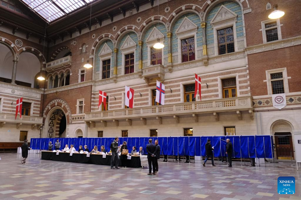 Voters collect ballot papers at the City Hall in Copenhagen, Denmark, on March 24, 2026. [Photo/Xinhua]