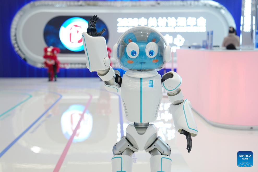 A robot waves to the audience at the media center of the 2026 Zhongguancun Forum (ZGC Forum) in Beijing, capital of China, March 24, 2026. (Xinhua/Ju Huanzong)