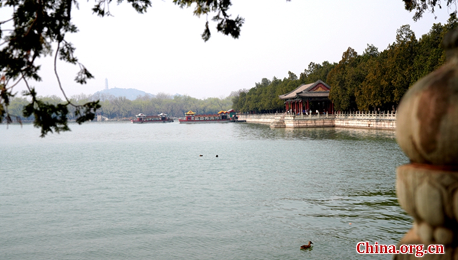 Boats glide across Kunming Lake at the Summer Palace in Beijing, March 24, 2026. [Photo by Xu Xiaoxuan/China.org.cn]