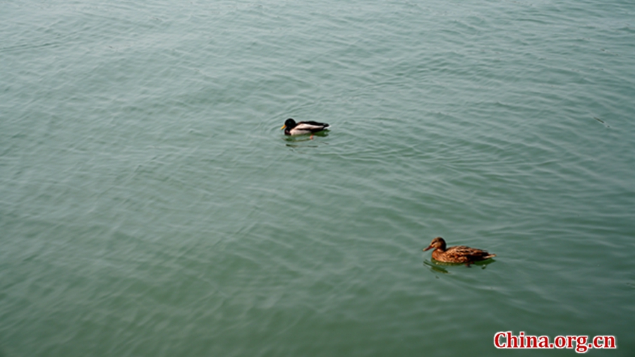 Two ducks swim peacefully across the Kunming Lake at the Summer Palace in Beijing, March 24, 2026. [Photo by Xu Xiaoxuan/China.org.cn]