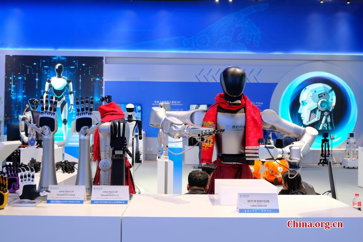 The embodied intelligence booth at the 2026 ZGC Forum, March 25, 2026. [Photo by Chen Xinyan/China.org.cn]
