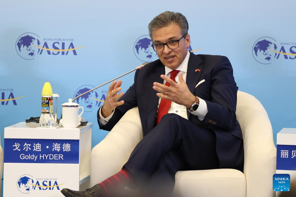 Goldy Hyder, president and chief executive officer of Business Council of Canada, speaks at a panel discussion themed on "Revitalizing APEC: towards the Vision of an Asia-Pacific Community" during the Boao Forum for Asia (BFA) Annual Conference 2026 in Boao, south China's Hainan Province, March 25, 2026. (Xinhua/Wang Yiliang)