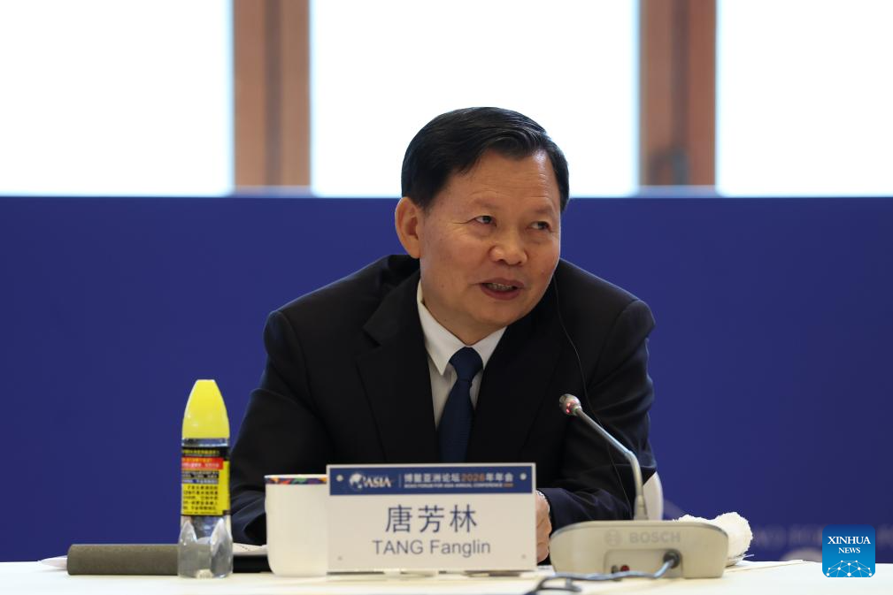Tang Fanglin, deputy head of the National Forestry and Grassland Administration of China, speaks at a panel discussion themed on "Advancing the SDGs: Actions beyond Commitments" during the Boao Forum for Asia (BFA) Annual Conference 2026 in Boao, south China's Hainan Province, March 25, 2026. (Xinhua/Wang Yiliang)