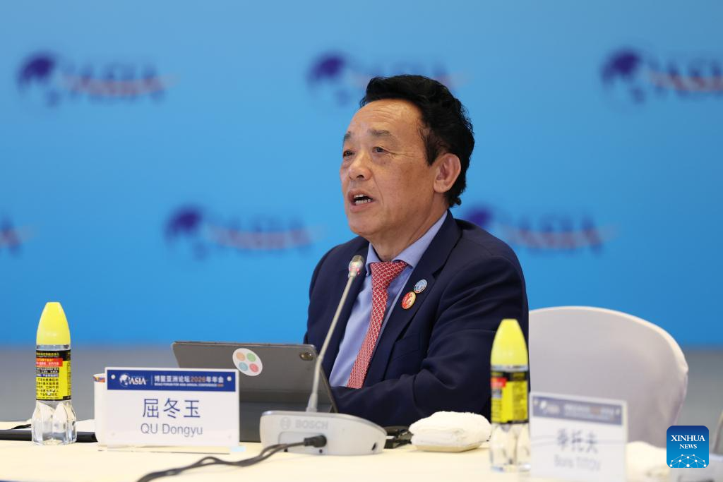 Qu Dongyu, director-general of the Food and Agriculture Organization of the United Nations, speaks at a panel discussion themed on "Advancing the SDGs: Actions beyond Commitments" during the Boao Forum for Asia (BFA) Annual Conference 2026 in Boao, south China's Hainan Province, March 25, 2026. (Xinhua/Wang Yiliang)