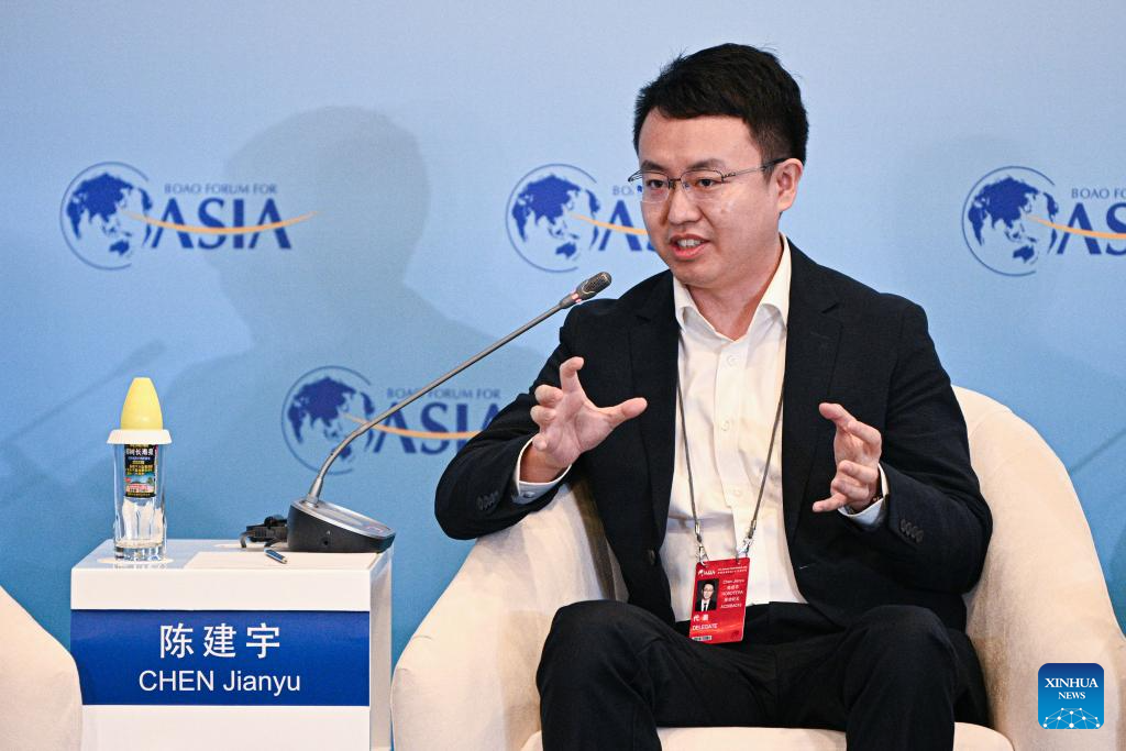 Chen Jianyu, founder of RobotEra, speaks at a panel discussion themed on "Advancement and Breakthrough of Humanoid Robotics" during the Boao Forum for Asia (BFA) Annual Conference 2026 in Boao, south China's Hainan Province, on March 25, 2026. (Xinhua/Pu Xiaoxu)