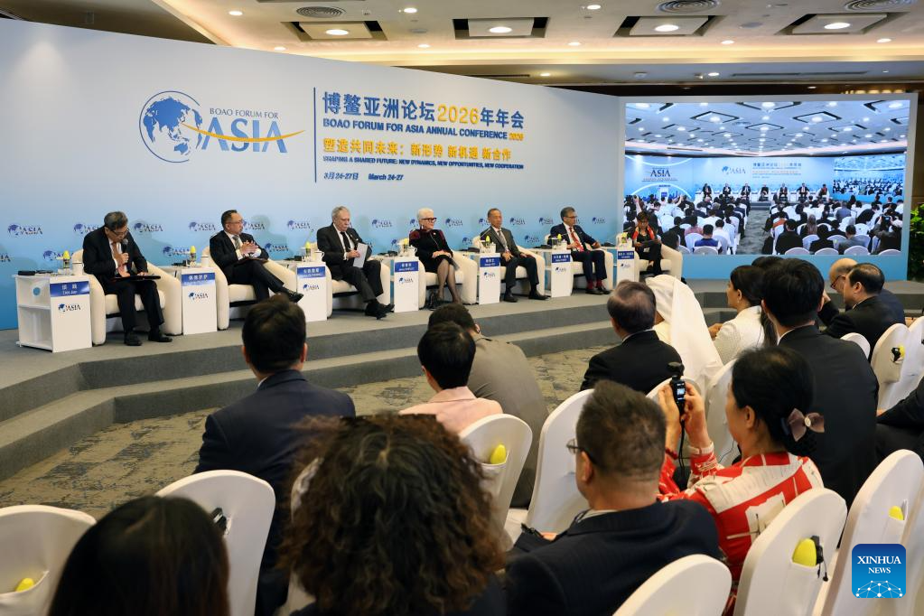 This photo taken on March 25, 2026 shows a scene at a panel discussion themed on "Revitalizing APEC: towards the Vision of an Asia-Pacific Community" during the Boao Forum for Asia (BFA) Annual Conference 2026 in Boao, south China's Hainan Province. (Xinhua/Wang Yiliang)
