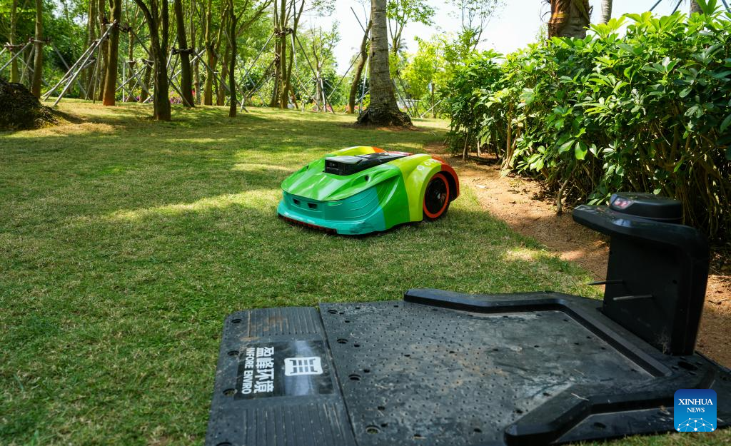 An intelligent unmanned lawnmower works on the lawn around the China (Hainan) Museum of the South China Sea in south China's Hainan Province, March 25, 2026. (Xinhua/Liu Lianfen)