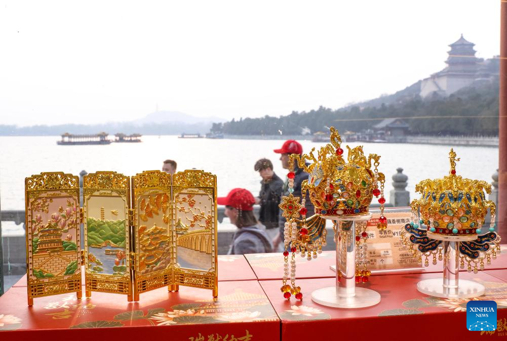 Cultural and creative products are pictured at a shop at the Summer Palace in Beijing, capital of China, March 23, 2026. (Xinhua/Zhang Fan)