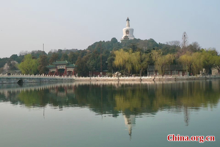 The White Dagoba on Jade Islet stands reflected in the lake at Beihai Park, Beijing, China, March 24, 2026. [Photo by Liao Jiaxin/China.org.cn]