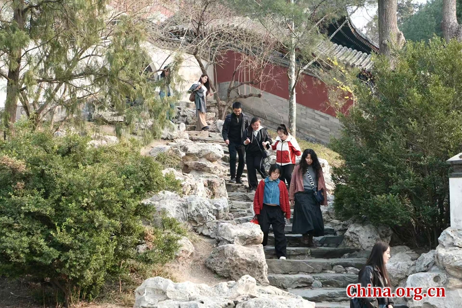 Tourists walk in Beihai Park, Beijing, China, March 24, 2026. [Photo by Liao Jiaxin/China.org.cn]
