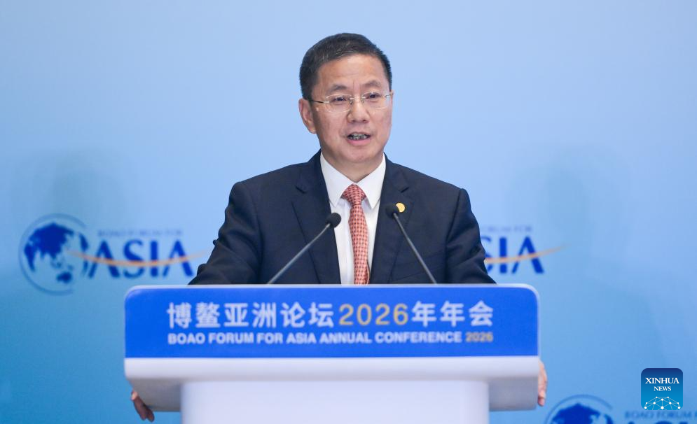 Luo Bixiong, chief scientist of Energy China, board chairman of China Power Engineering Consulting Group Co., Ltd. (CPECC) and president of China Electric Power Planning and Engineering Institute (EPPEI), speaks at a panel discussion themed on "Blue Economy: New Drivers for Marine Growth and New Future for Ports and Shipping" during the Boao Forum for Asia (BFA) Annual Conference 2026 in Boao, south China's Hainan Province, March 26, 2026. (Xinhua/Yang Guanyu)