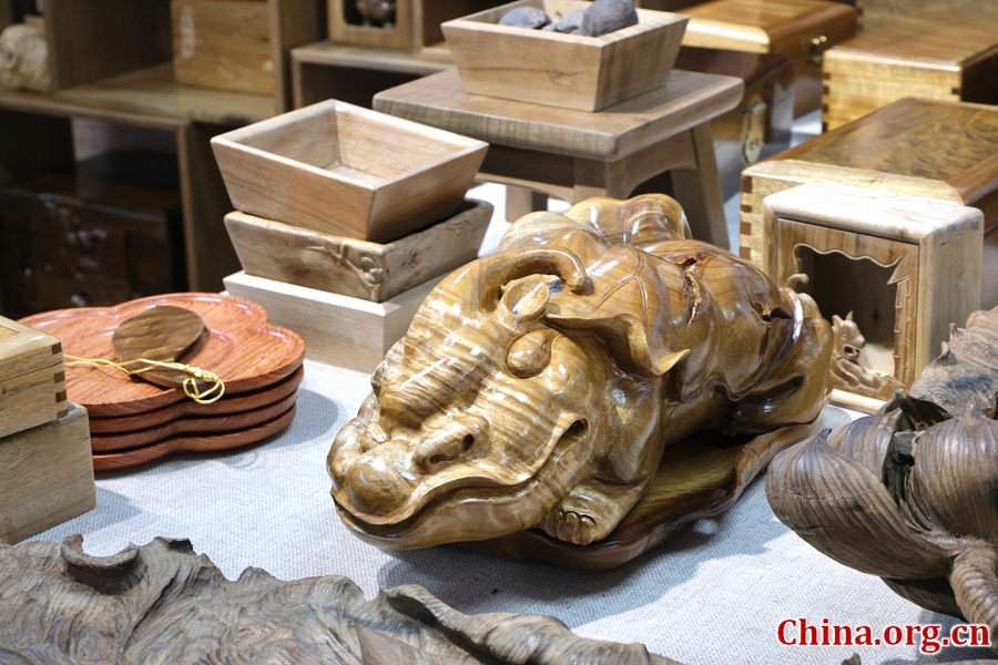 Wooden crafts on display at the 53rd China Beijing International Gifts, Premium & Houseware Exhibition, Beijing, China, March 26, 2026. [Photo by Liao Jiaxin/China.org.cn]