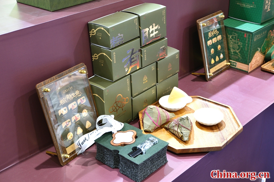 Zongzi from a brand based in China's Taiwan province on display at the 53rd China Beijing International Gifts, Premium & Houseware Exhibition, Beijing, China, March 26, 2026. [Photo by Liao Jiaxin/China.org.cn]