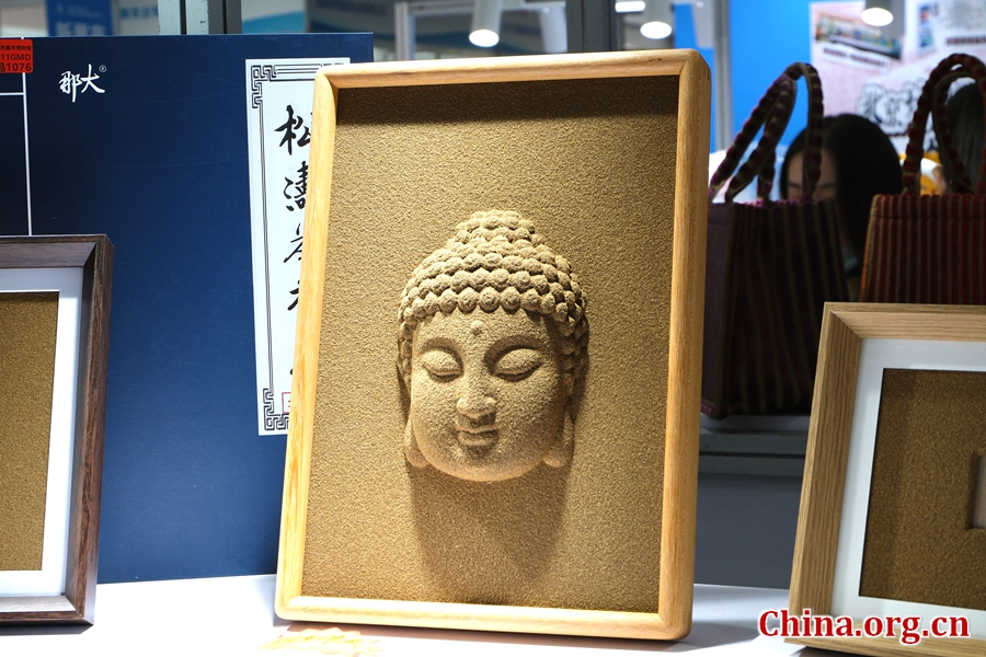 Buddha head relief crafts made from agarwood on display at the 53rd China Beijing International Gifts, Premium & Houseware Exhibition, Beijing, China, March 26, 2026. [Photo by Liao Jiaxin/China.org.cn]