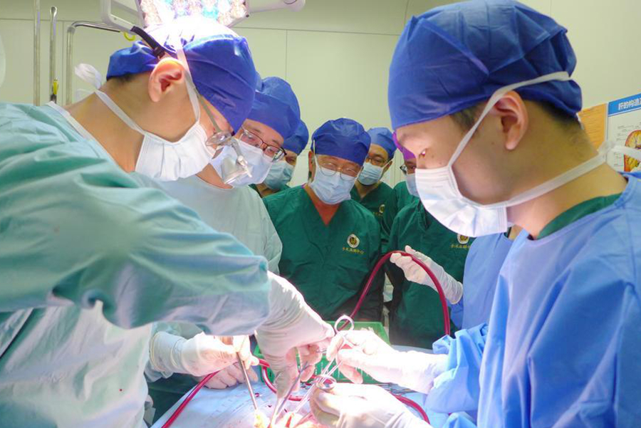 The ischemia-free organ transplantation (IFOT) is applied in a surgery carried out at the First Affiliated Hospital of Sun Yat-sen University in Guangzhou, capital of south China's Guangdong province, Dec. 12, 2023. [Photo/Xinhua]