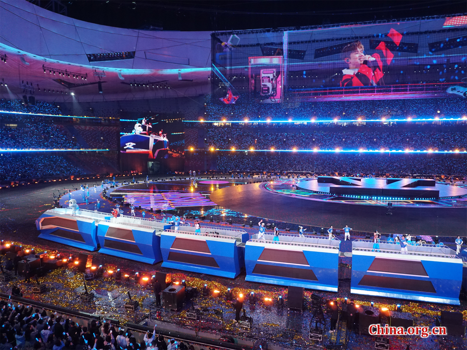 Chinese singer Jason Zhang performs the opening night of his "FUTURE • LIVE — Leave For 1982" world tour at the National Stadium in Beijing on March 27. Zhang is scheduled for an unprecedented 16-show run at the venue until April 19. [Photo by Li Congrong/China.org.cn]