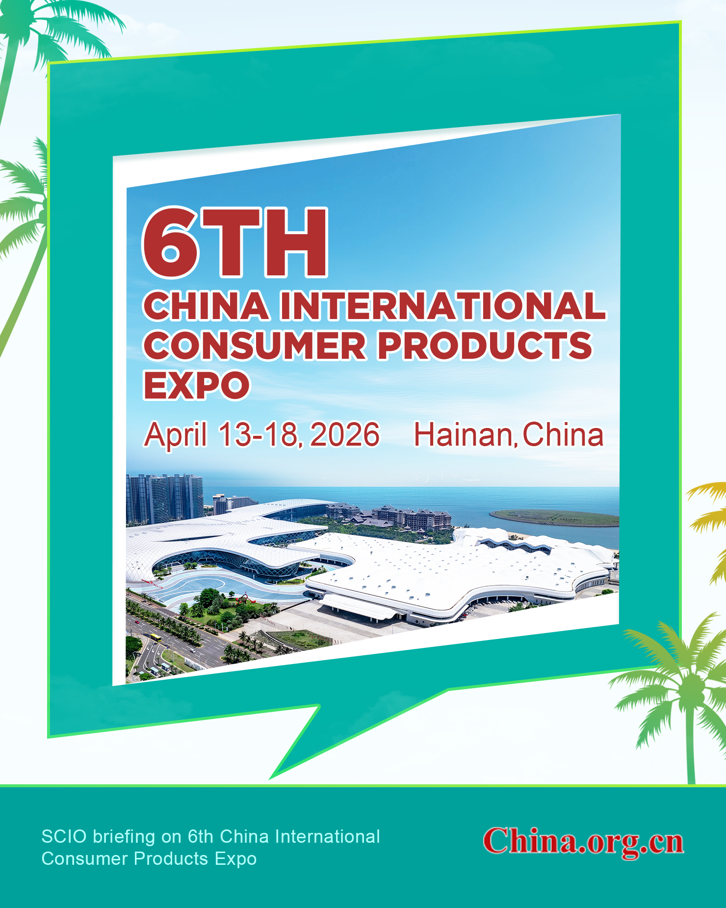 The sixth China International Consumer Products Expo will be held in Hainan from April 13 to 18, an official said at a press briefing in Beijing on Monday. The event will be China's first major expo since it launched its 15th Five-Year Plan (2026-2030), and the first to take place in Hainan since the province launched island-wide special customs operations.