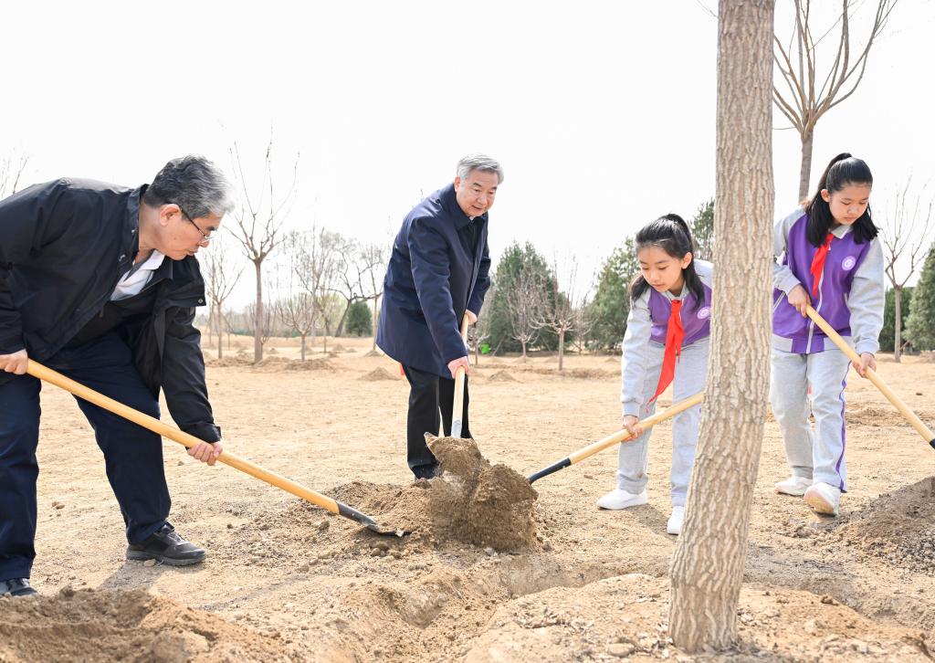Xi and other Party and state leaders, including Li Qiang, Zhao Leji, Wang Huning, Cai Qi, Ding Xuexiang and Li Xi, arrived at the tree-planting site in Changping District of Beijing in the morning. Xi waved to the crowd to extend his greetings before picking up a shovel to join the activity. He planted saplings of multiple types of trees.
