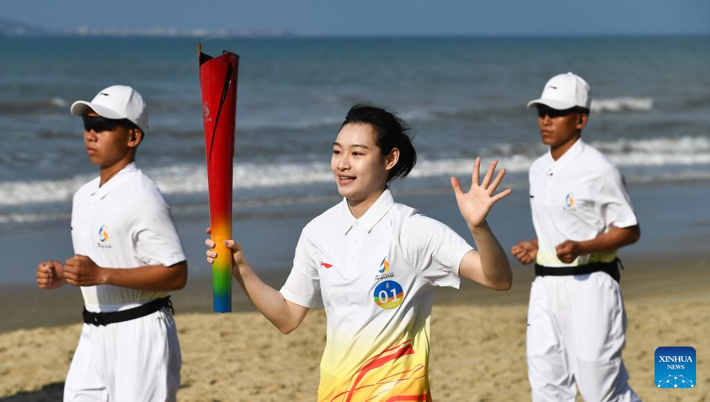 Qi Guangpu, a Winter Olympic champion and the final torchbearer, said it was his first time participating in a torch relay despite competing in multiple Olympics. He expressed excitement and honor at carrying the flame, adding that he was particularly looking forward to the beach wrestling events and hopes athletes will experience Sanya's unique charm.
