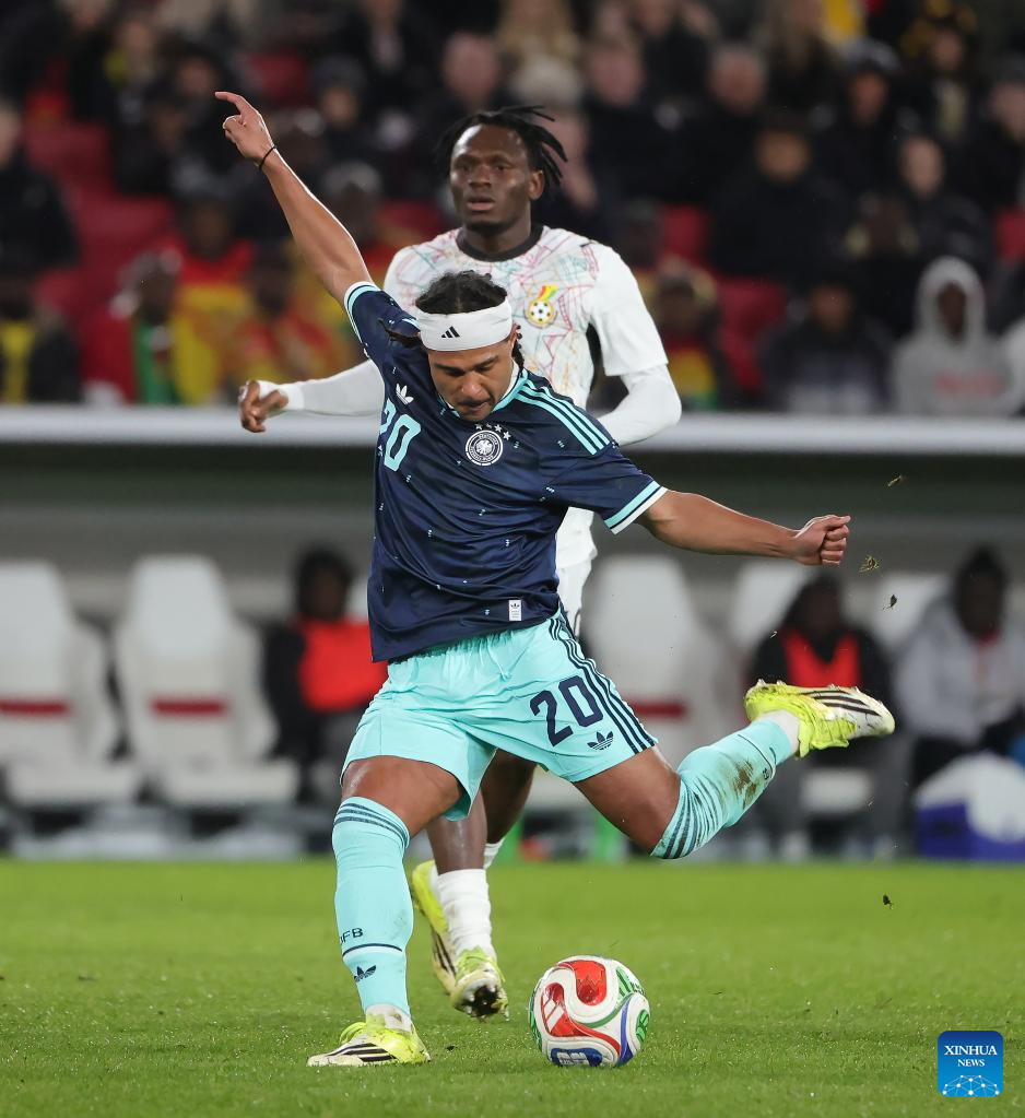 Serge Gnabry (front) of Germany competes during an international friendly football match between Germany and Ghana in Stuttgart, Germany, March 30, 2026. (Photo by Philippe Ruiz/Xinhua)