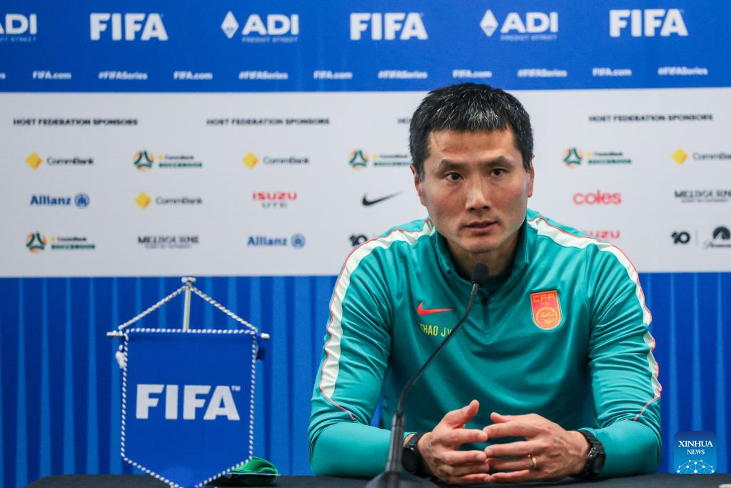 Head Coach of China Shao Jiayi speaks at the press conference after the FIFA Series 2026 International Friendly Match between China and Cameroon in Melbourne, Australia, March 31, 2026. (Photo by Jin Cheng/Xinhua)