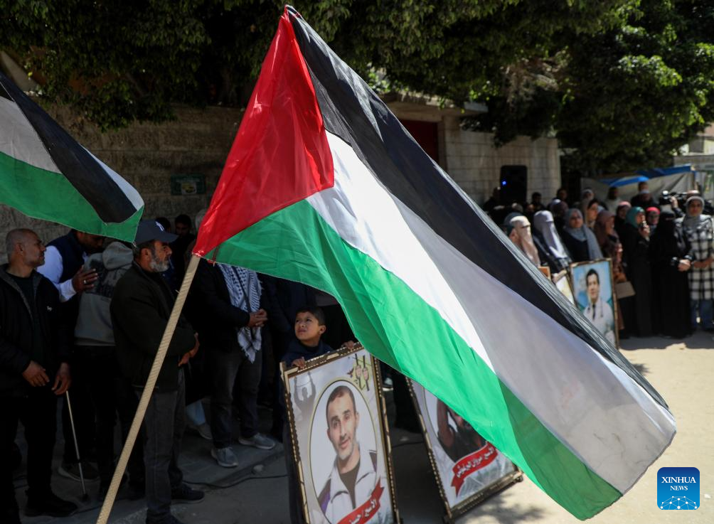 Palestinians demonstrate against Israel's death penalty law in the west of Gaza City on March 31, 2026. [Photo/Xinhua]