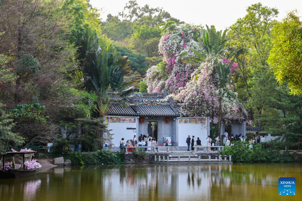 Tourists visit Shenzhen International Garden and Flowers Expo Park in Shenzhen, south China's Guangdong Province, March 24, 2026. In recent years, Shenzhen has enriched citizens' park experience by adding diverse functions to traditional parks. As part of this effort, the city has launched the "Park BOX" project at Shenzhen Bay Park, which features multiple public spaces combined with art design and convenient supporting facilities such as book bars and drone delivery services. Shenzhen has also leveraged resources from surrounding commercial areas to better integrate ecological spaces into urban life, meeting the public's demand for diverse, high-quality park experiences. (Xinhua/Liang Xu)