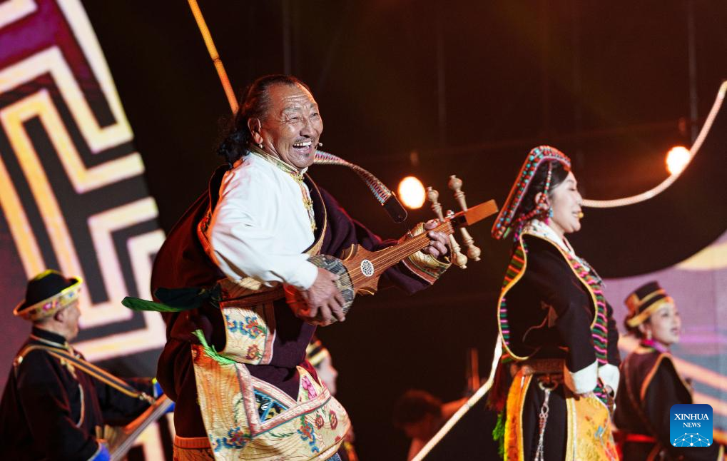 People perform at the opening ceremony of a peach blossom tourism and cultural festival in Nyingchi, southwest China's Xizang Autonomous Region, April 3, 2026. A peach blossom tourism and cultural festival kicked off in Nyingchi on Friday. More than 20 activities are scheduled to be held during the event. (Xinhua/Tenzin Nyida)