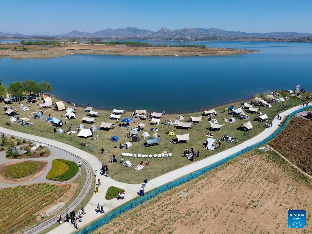 People enjoy their leisure time at a camping site during the Qingming Festival holiday in Longyang Town of Tengzhou City, east China's Shandong Province, April 4, 2026. (Xinhua/Zhu Zheng)