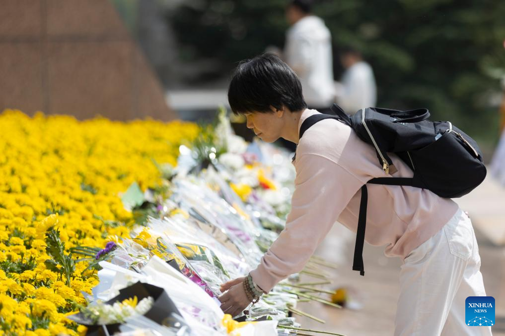 A woman pays tribute to martyrs at Longhua Revolutionary Martyrs' Cemetery in east China's Shanghai, April 5, 2026. People across the country attended various activities to pay tribute to martyrs during the Qingming Festival, or Tomb-Sweeping Day, on Sunday this year. (Xinhua/Wang Xiang)