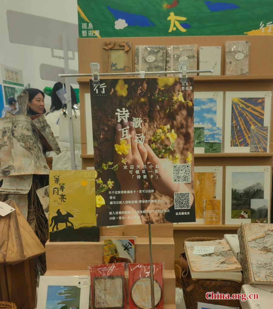 An exhibition features poems by a female poet of the Yi ethnic group at the Zuoshu Book Fair in Beijing, April 2, 2026. [Photo by Liu Sitong/China.org.cn]