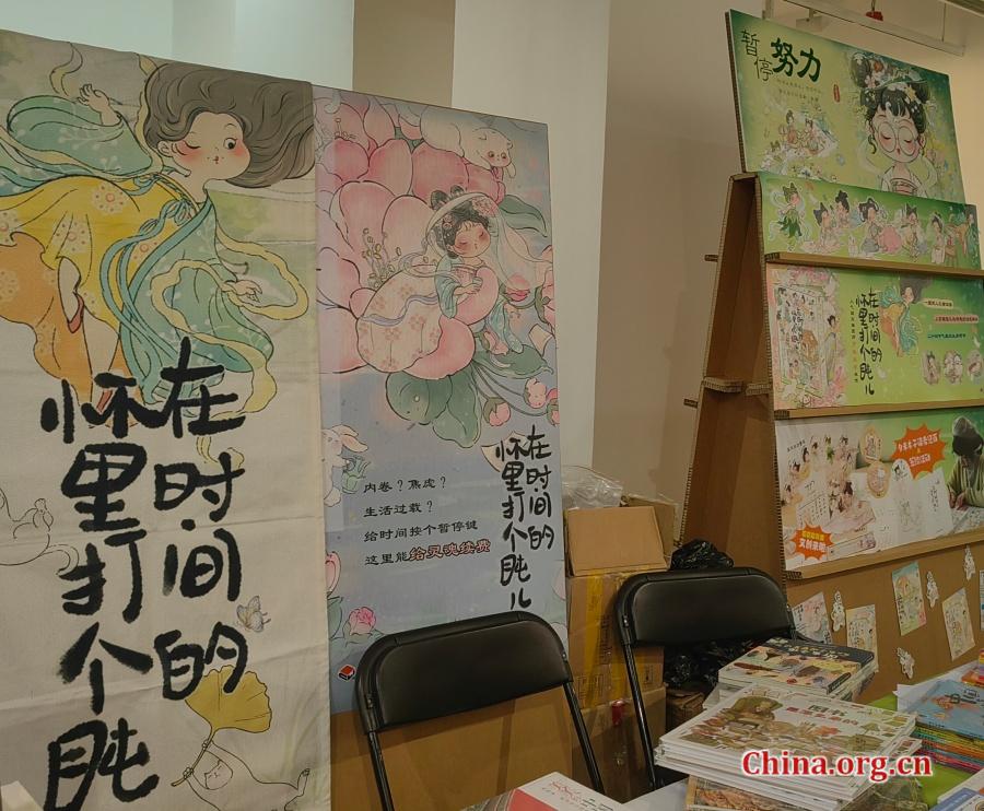 An illustrated book depicting a girl in traditional costume enjoying everyday life is displayed at the Zuoshu Book Fair in Beijing, April 2, 2026. [Photo by Liu Sitong/China.org.cn]
