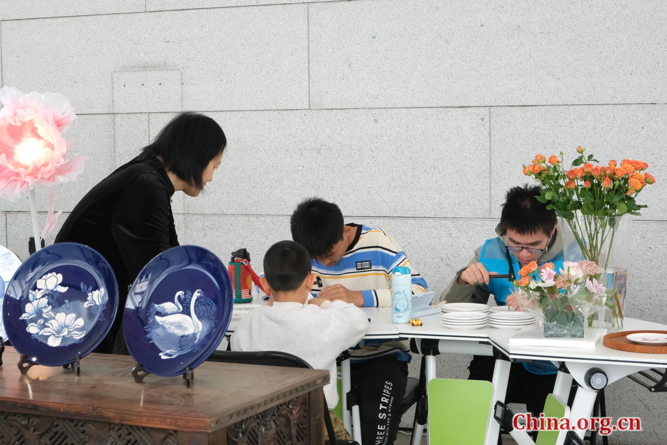 Children experience engraving on porcelain at the Museum of Chinese Gardens and Landscape Architecture, Beijing, April 5, 2026. [Photo by Liao Jiaxin/China.org.cn]