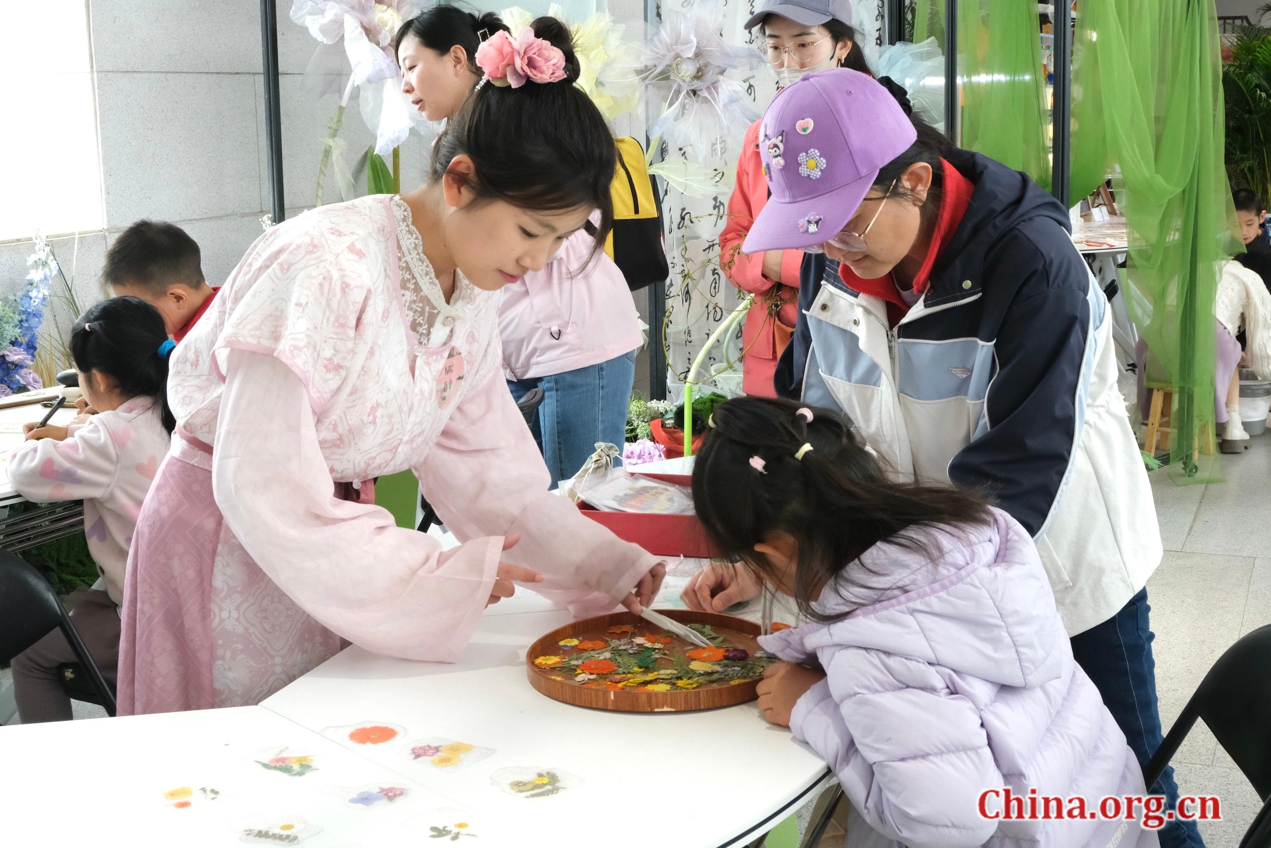 Visitors make pressed flower bookmarks at the Museum of Chinese Gardens and Landscape Architecture, Beijing, April 5, 2026. [Photo by Liao Jiaxin/China.org.cn]