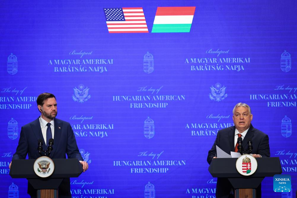 Hungarian Prime Minister Viktor Orban (R) and U.S. Vice President JD Vance attend a joint press conference in Budapest, Hungary, April 7, 2026. [Photo/Xinhua]