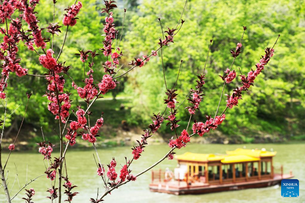 People take a boat for sightseeing in Nanjing, east China's Jiangsu province, April 8, 2026. (Photo by Sun Zhongnan/Xinhua)