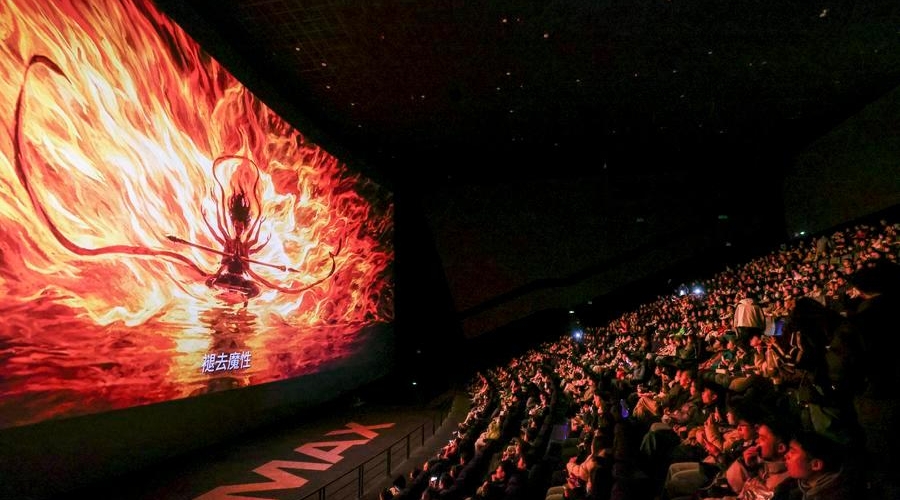 Audience watch the Chinese animated film "Ne Zha 2" at a cinema in Guiyang, southwest China's Guizhou Province, Feb. 25, 2025. [Photo/Xinhua]