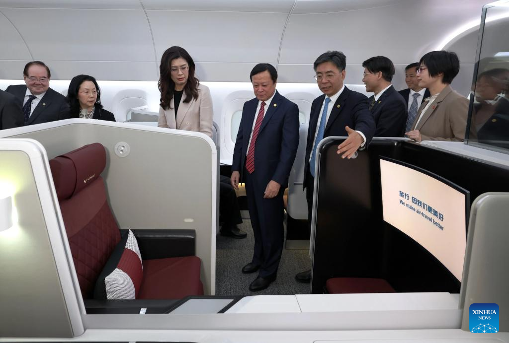 Cheng Li-wun, chairwoman of the Chinese Kuomintang (KMT) party, leads a KMT delegation in a visit to the Commercial Aircraft Corporation of China (COMAC) in Shanghai, east China, April 9, 2026. [Photo/Xinhua]