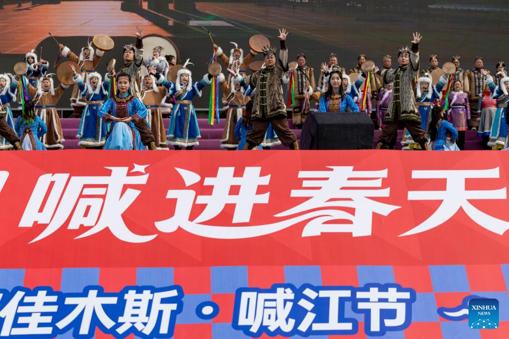 A performance is staged at the Hanjiang festival in Jiamusi, northeast China's Heilongjiang Province, April 10, 2026.